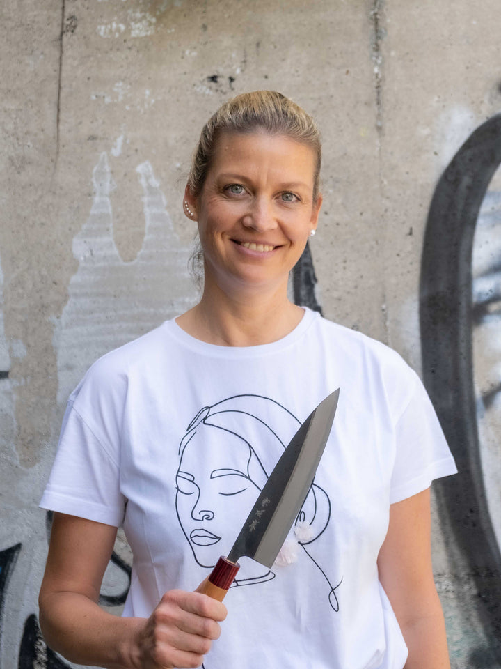 Das Messer ist unser grundlegendstes und am häufigsten verwendetes Werkzeug in der Küche. Die richtige Größe und Art, der korrekte Stahl, ein guter Griff und eine feine Schärfe verwandeln das Messer in eine Verlängerung Ihres Arms. Japanische Köche sagen, dass man mit einem guten Messer Jinba Ittai 人馬一体 erreichen kann, was wörtlich „Person [and] Pferd [as] ein Körper“ bedeutet. Eine wahre Verbindung und Übereinstimmung zwischen Ihrem Arm und Ihrem Messer. Mehr Fokus auf das Essen bedeutet besseres Essen.