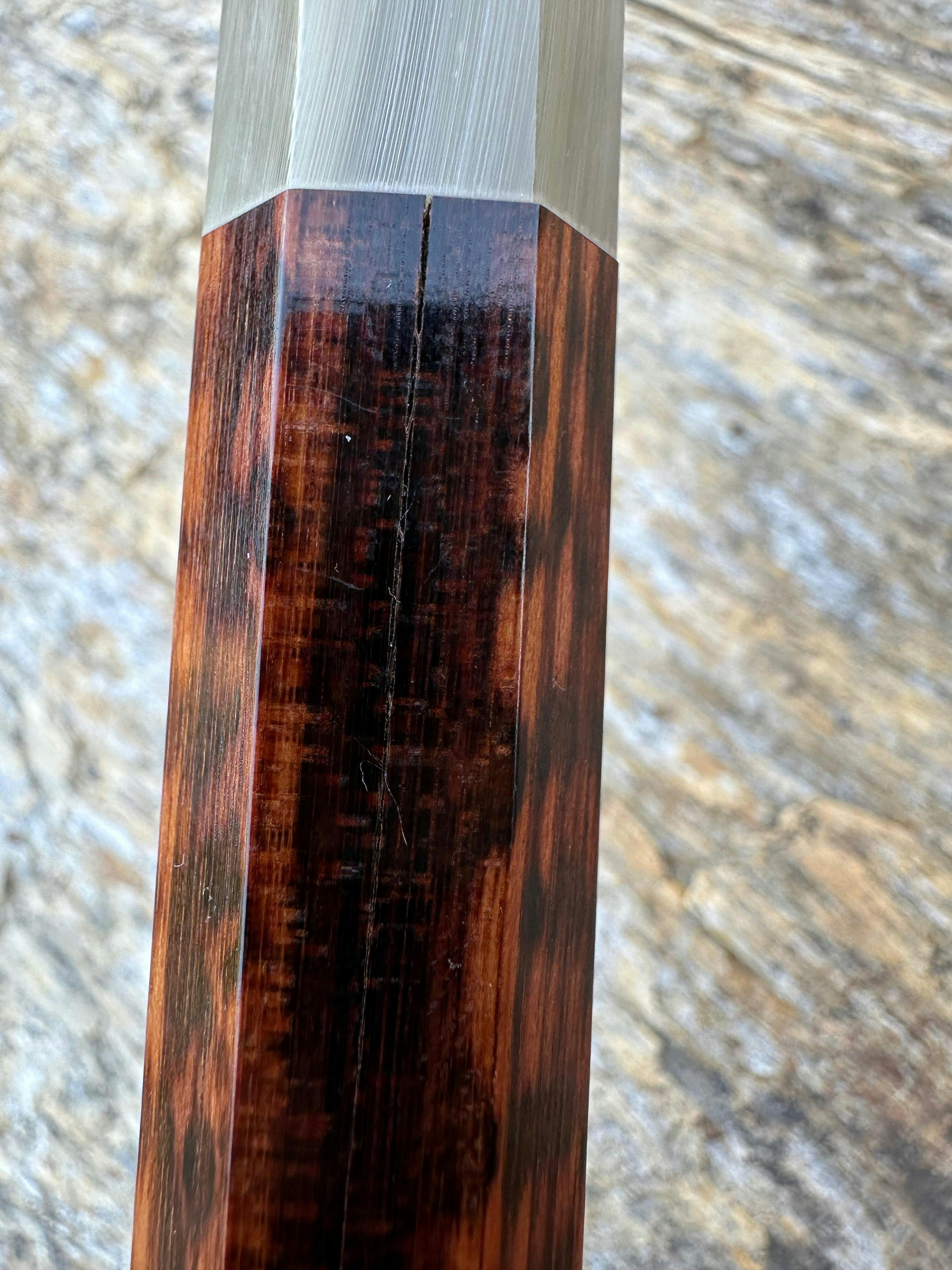 Ein traditioneller japanischer Griff in achteckiger Form aus Schlangenholz, mit einer ferrule aus blonden Büffelhorn. Für Links- und Rechtshänder konzipiert, bietet es einen ausgewogenen und komfortablen Griff.