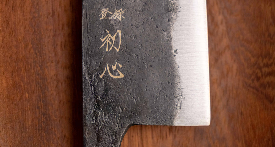 La hoja fue laminada con hierro blando, que es hierro con solo una pequeña cantidad de carbono añadido. La laminación de la hoja mejora su integridad estructural, ya que el núcleo del cuchillo está hecho de acero Aogami #2 de alto carbono duro—y por lo tanto frágil—que es propenso a romperse por sí solo.