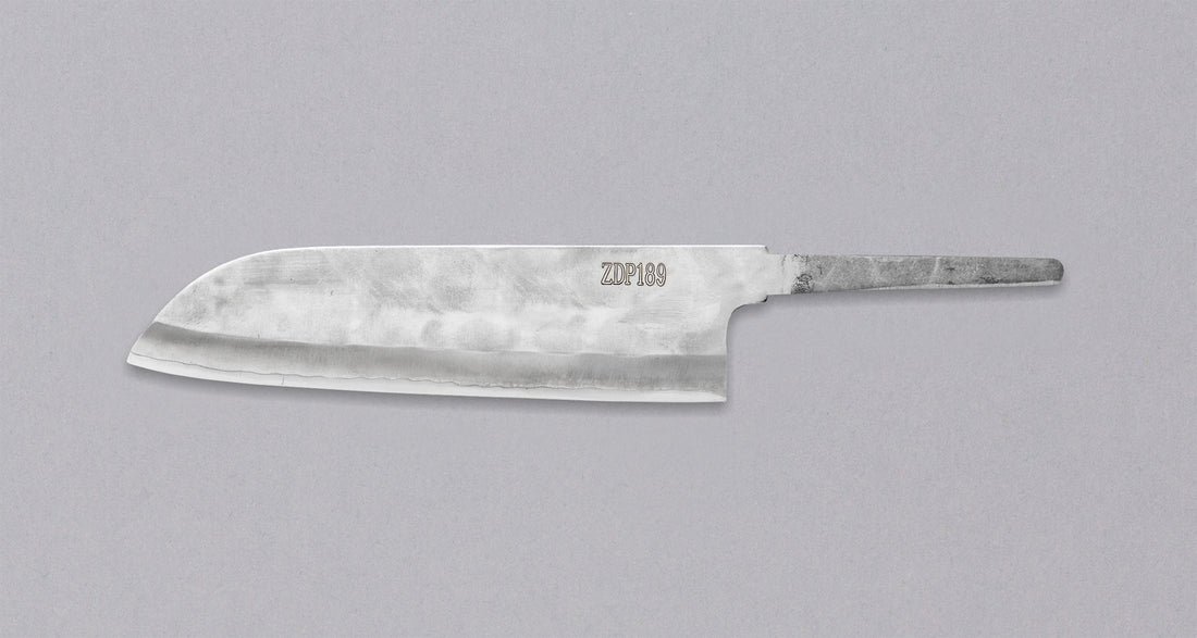 La hoja ZDP-189 Santoku Silver está disponible sin mango, dándote la oportunidad de crear un cuchillo único perfectamente adaptado a tu gusto y necesidades.
