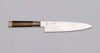 Gyuto è la forma di lama più versatile e utile nella cucina moderna. Ha un profilo ampio per facilitare il trasferimento del cibo e tende a essere abbastanza piatta verso il tallone, permettendo un taglio facile e veloce sul tagliere. Una punta appuntita consente di infilzare e di eseguire lavori precisi e delicati. Una leggera curva tra la punta e la sezione centrale rende la pancia ideale per far oscillare la lama avanti e indietro durante il taglio. Può essere usata per tagliare carne, pesce e verdure.