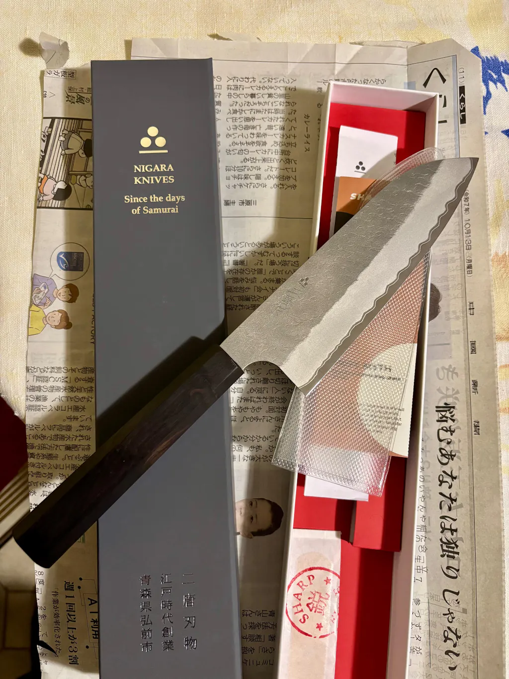 I got my Nigara Santoku Aogami Super Migaki Tsuchime today — and first of all, thanks for the lightning‑fast shipping.
