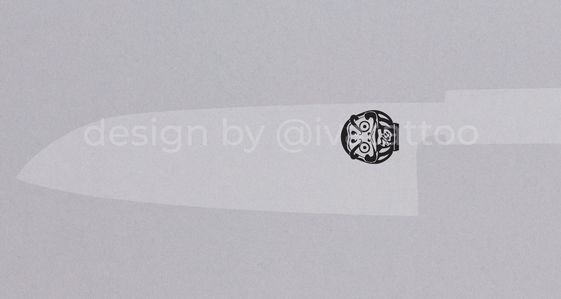 We collaborated with the skilled tattoo artist Iva (@ivatattoo), owner of @rozatiger.tattoo, for these designs. She is also a big fan of all things Japan-related and specializes in Japanese motifs. We designed the Daruma Doll drawing (as well as our other designs) that can be engraved on your knife. Simply add this engraving service to your cart together with the knife you would like to engrave.