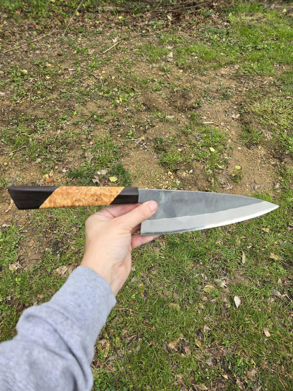 Blade construction: San-mai / hollow grind / kuro-uchi
