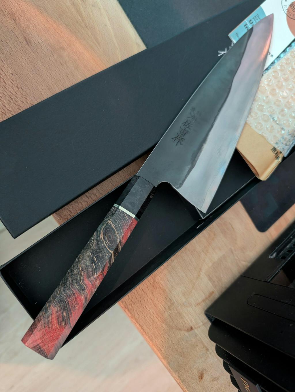 The knife is manufactured at the smithy of Yoshida Hamono in Japan, a family company with an age-long tradition in manufacturing state-of-the-art tools and Japanese swords, i.e., katanas, by hand. Yoshida Hamono has a great deal of experience forging ZDP-189 steel in the traditional manner.