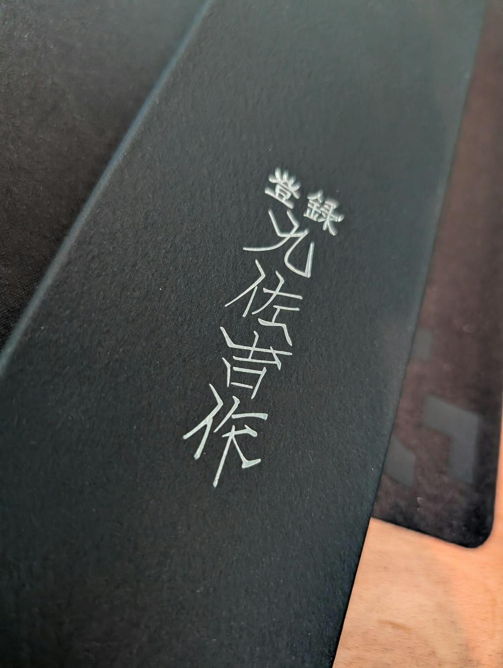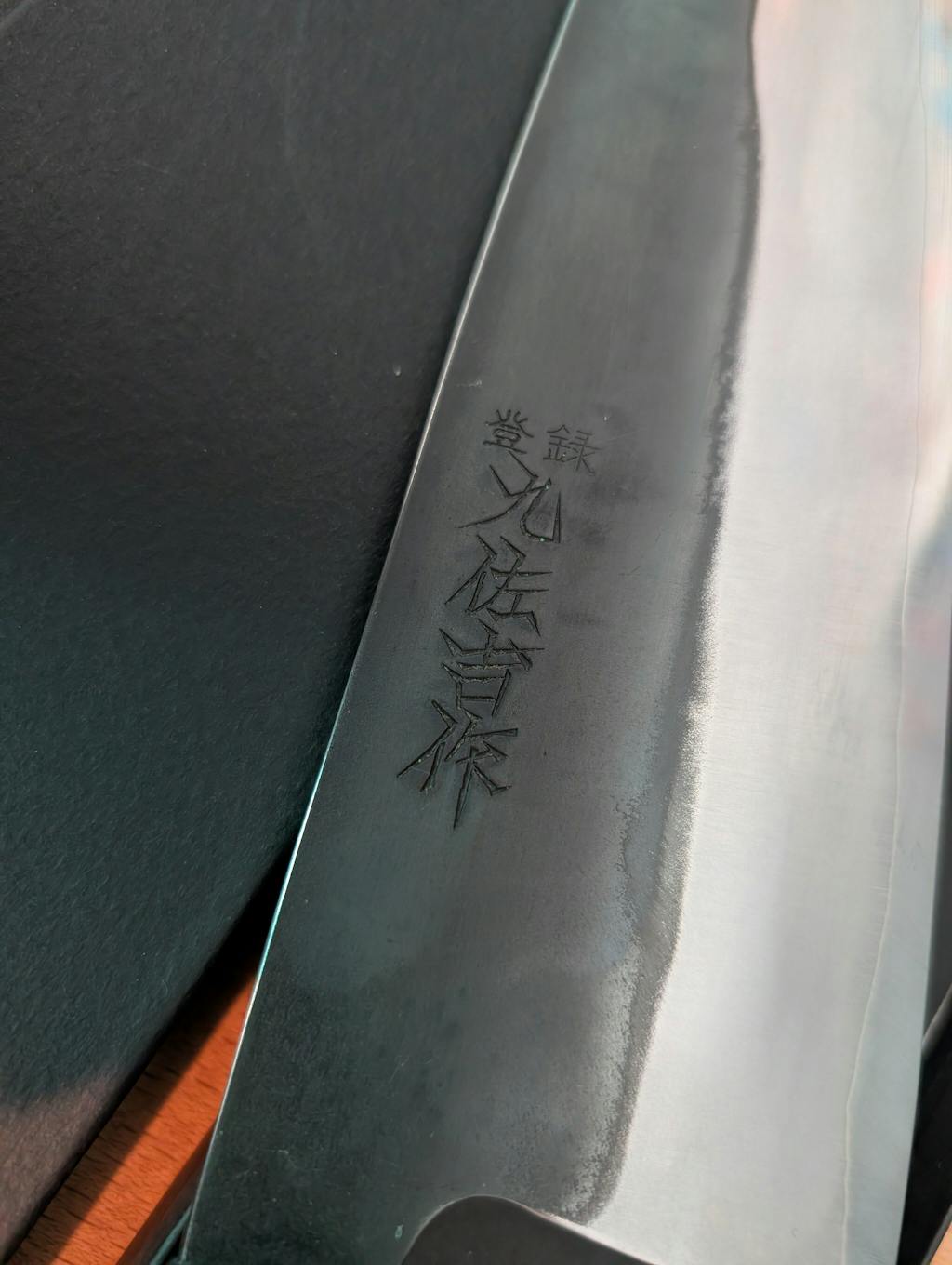 Kanji on the blade: 登録 九佐吉作 "registered as work of Yoshida Smithy in Saga Prefecture, Kyushu, Japan"