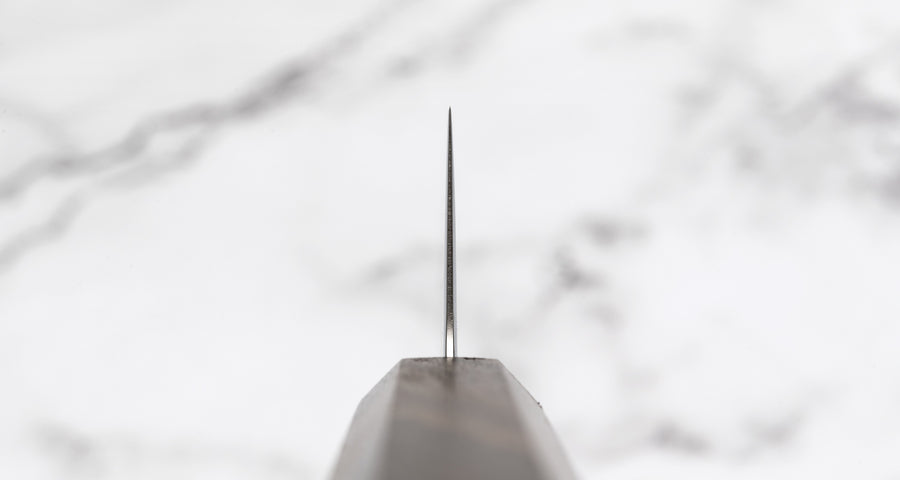 SLD steel by Hitachi is a high-performance tool steel known for outstanding edge retention, toughness, and semi-stainless corrosion resistance. Originally made for industrial blades, it’s now trusted in Japanese kitchen knives for its 60–62 HRC hardness and low-maintenance sharpness—perfect for serious home cooks and professionals alike. Because SLD isn't completely stainless, clean it and dry it off when you're done using it.
