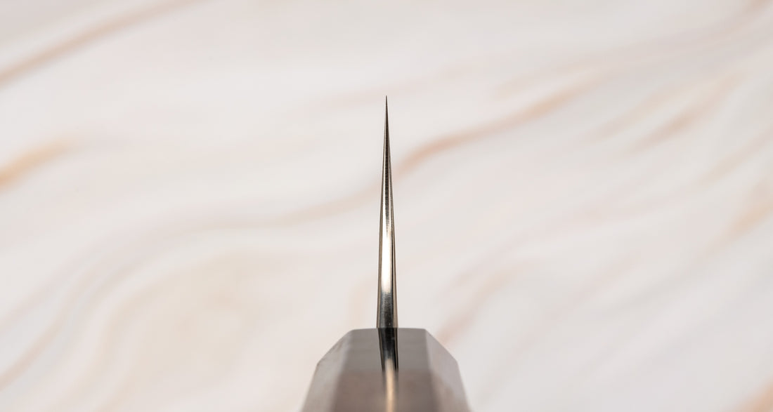 Ground thin with a fine edge and slight distal taper, this geometry delivers both cutting power and precision. It handles dense ingredients with ease and glides through delicate ones effortlessly.