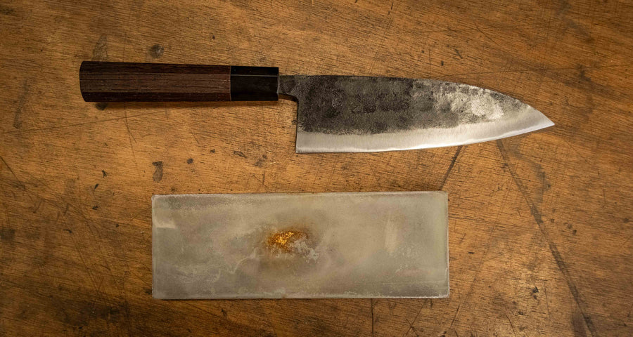 Aogami #2 is a very popular steel in Japanese knife making and one of the finest high-carbon steels, meaning the knives forged from it will have exceptional edge retention and also sharpen very easily. A high-carbon steel that should be maintained accordingly (⚠️ read more about knife maintenance here).