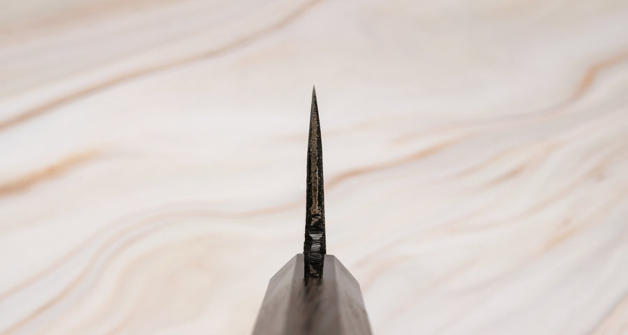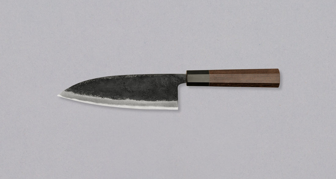 The blade has a kuro-uchi blade finish. The kuro-uchi finish on Aogami #2 blades provides a protective layer against rust and other external elements that can otherwise damage the surface.