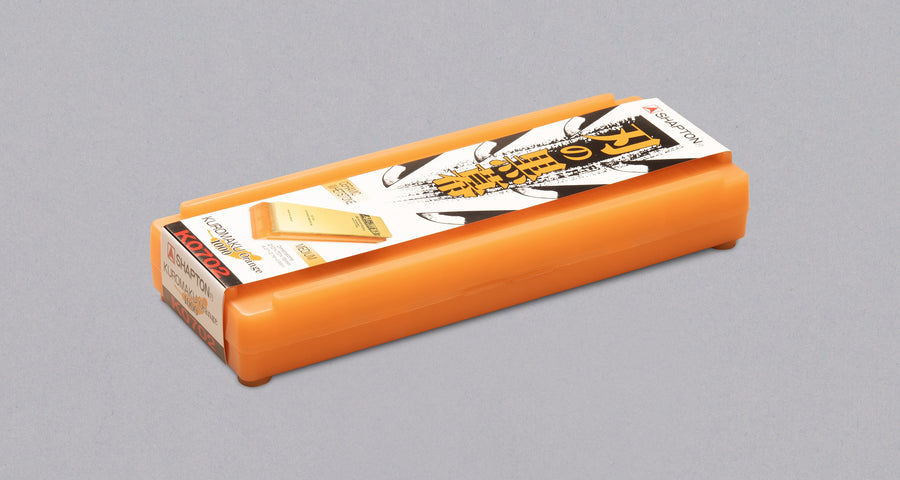 Shapton Kuromaku #1000 (orange) is the go-to grit for routine sharpening and edge refinement. It restores a clean, sharp edge without excessive wear. A reliable mid-grit stone that works great on its own or as part of a multi-stone progression.