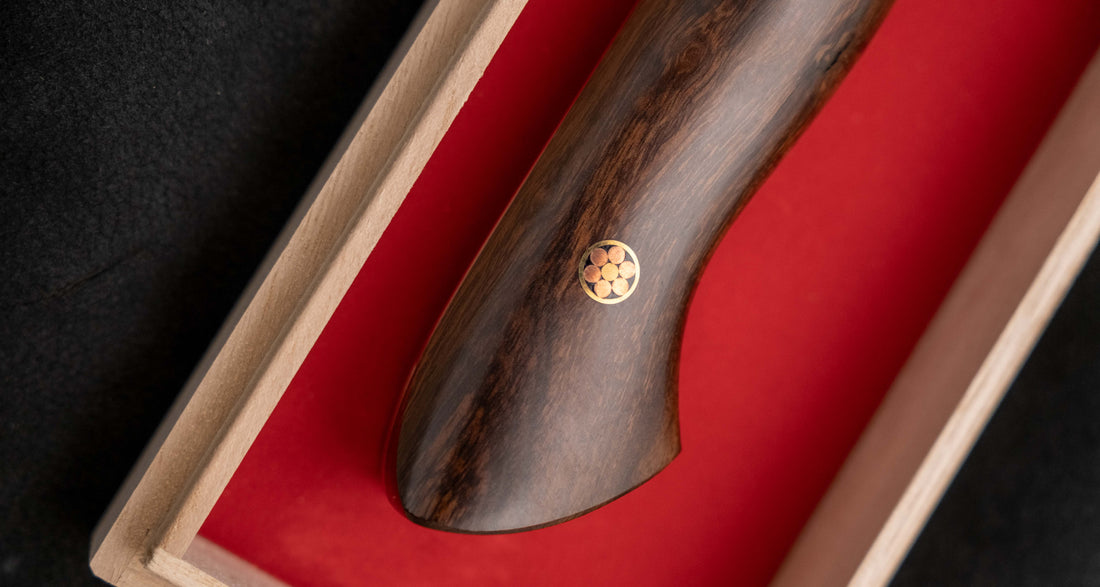 ✔️ Original box from the blacksmith, which we wrap in an old Japanese newspaper sheet – so every knife is ready to be passed on as a gift as soon as it hits your doorstep!