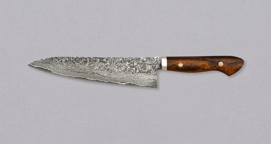 SG2 powder steel, bold Damascus finish, and a durable ironwood handle—this 210mm (8.3") gyuto is a chef’s knife worth collecting—and using every day.
