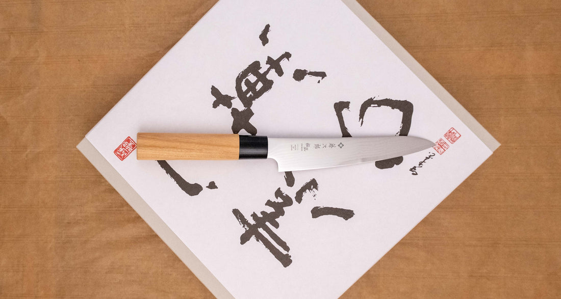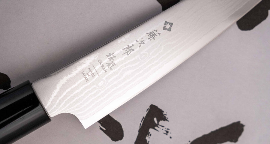 The Ouran Petty is a compact and precise Japanese utility knife designed for detailed tasks. Its shorter, slender blade with a slight curve is perfect for peeling, trimming, and slicing smaller ingredients with accuracy. Ideal for home cooks and professionals alike, it offers excellent control for delicate prep work where precision matters most.