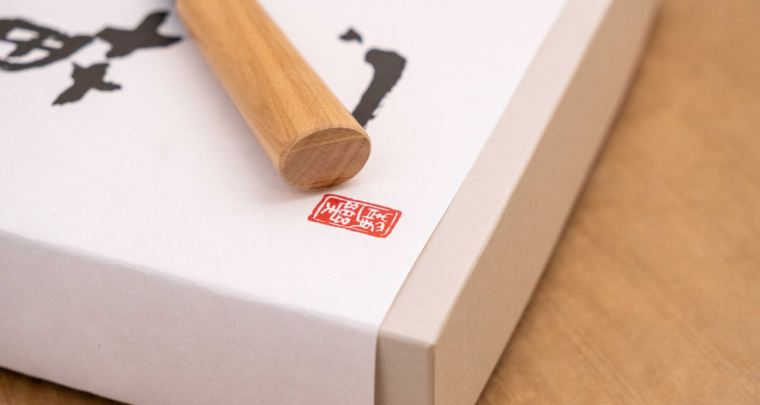 ✔️ Original box from the blacksmith, which we wrap in an old Japanese newspaper sheet – so every knife is ready to be passed on as a gift as soon as it hits your doorstep!