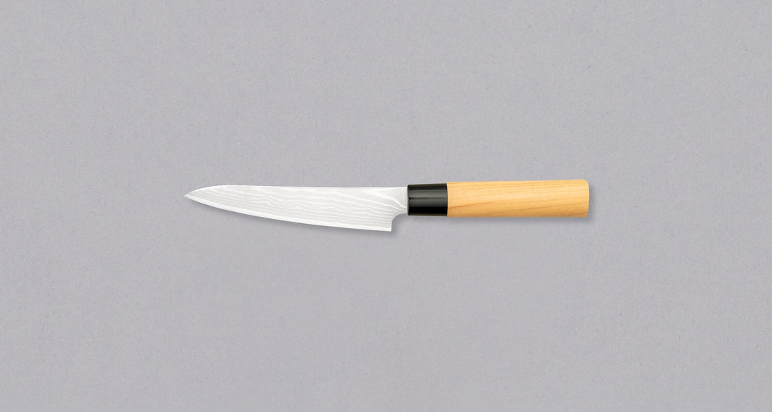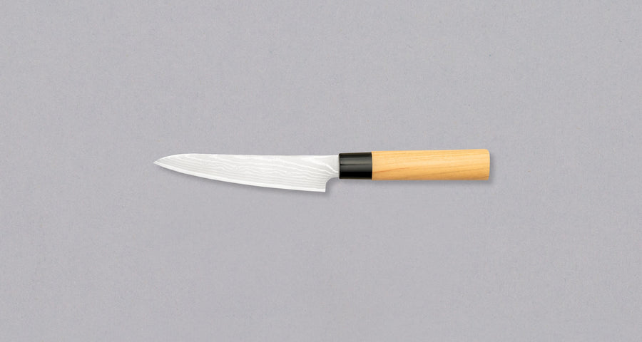 Explore the TOJIRO Petty with VG-10 steel and Damascus cladding—your go-to precision knife for detailed prep. It’s sharp, durable, and perfect for peeling, trimming, and slicing smaller ingredients with ease.