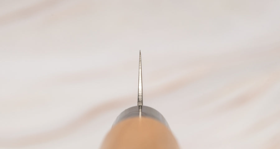 This knife features a double bevel (50/50 symmetrical), meaning the blade is sharpened symmetrically on both sides. That makes it equally comfortable for both left- and right-handed users and easier to maintain at home. It also allows for clean, controlled cuts—especially helpful for precise, consistent cuts—whether you're prepping quickly or taking your time.